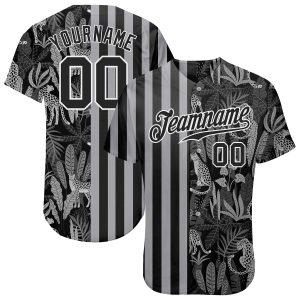 Custom Black Black-Gray 3D Pattern Design Leopards And Tropical Palm Leaves Authentic Baseball Jersey