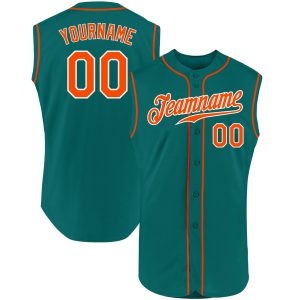 Custom Aqua Orange-White Authentic Sleeveless Baseball Jersey