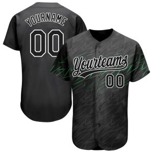 Custom Black Black White-Neon Green 3D Pattern Design Authentic Baseball Jersey