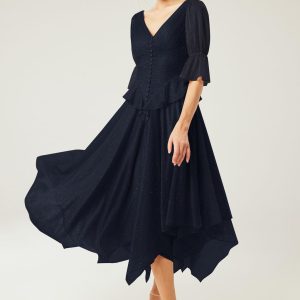 $100.00 – $119.95Hollyhock is a gorgeous fairytale dress perfectly suitable for honeymoon and as a bridesmaid dress. Designed from top-quality glitter mesh. it features a well-layered bodice with sweetheart neckline and a fully lined built-in bra. which is held elegantly by puffy sleeves and leads to a flowy A-line floor-length gown.SKU : AWLFLW211U81CPFabric : Glitter MeshSilhouette : A-lineHemline : Tea LengthNeckline : V-NeckBack Detail : Lace-upStraps Sleeves : Puff Sleeves. StraplessLining : Built...