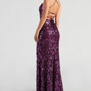 Special OccasionShowcase a gorgeous silhouette in the stunning Lana sequin mesh formal dress. She features a sleeveless square neckline. spaghetti straps. an open back with a lace-up strappy design for a customized fit. and a floor-length hem with a high front slit. The lined mesh fabric features all-over sequin embroidery in a chic scroll pattern....
