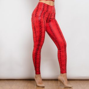 Snakeskin Pattern High Waist Lift Shaping Leggings – Red