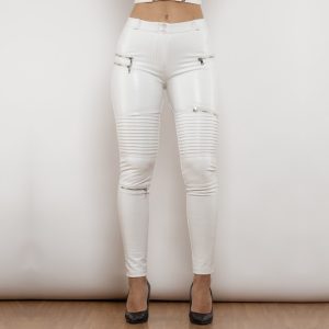 Middle Waist Shinning Moto Leather Lift Pants – Ivory